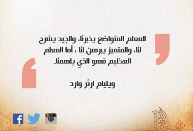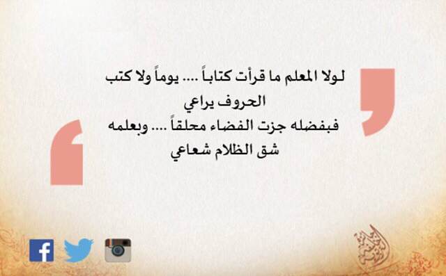 ملف مرفق 29711 ملف مرفق 29712 ملف مرفق 29713 وفاء لأهل العطاء .. قُـمْ للمعلّمِ وَفِّـهِ التبجيـلا كـادَ المعلّمُ أن يكونَ رسولا أعلمتَ أشرفَ أو أجلَّ من الذي يبني وينشئُ أنفـساً وعقولا وفاء لأهل العطاء .. معلمينا الأفاضل كل عام وأنتم للعطاء عنوان كل عام وأنتم للعلم ميدان كل عام وحصادكم عقل الانسان صانع الحضارة وخليفة الأكوان وفاء لأهل العطاء .. لكل معلم ومعلمة رسالتك سامية وهمتك عالية وآثارك واضحة وبذورك جميلة وفعالك حميدة وأهدافك نبيلة فشكرا لكم وفاء لأهل العطاء .. ماأنت إلا النبع فيض عطائه خير يفيض وهاطل مدرارا وفاء لأهل العطاء .. تحيا وتحمل للوجود رسالة قدسية يسمو بها الأطهار وفاء لأهل العطاء .. علم بآفاق المعالي شامخ مازال بين الكائنات يمجد وفاء لأهل العطاء .. إن المعلم للخليقة نورها يبني العقول يزيح جهل ضلال قمر على كل النجوم وسيد قبس يضيء مدارك الأجيال وفاء لأهل العطاء .. ما أشرقت في الكون أي حضارة إلا وكانت من ضياء معلم كل عام وأنتم شموع تضيء عتمة العقول ومناهل للعلم لا تنضب كل عام والعطاء بكم يتجدد والعلم بكم يزدان وفاء لأهل العطاء .. أنت المعلم أصل كل فضيلة أنت الإمام سبقت بالإحسان إنا نعانق بالوفاء جهودكم ستظل دستورا مدى الأزمان |
