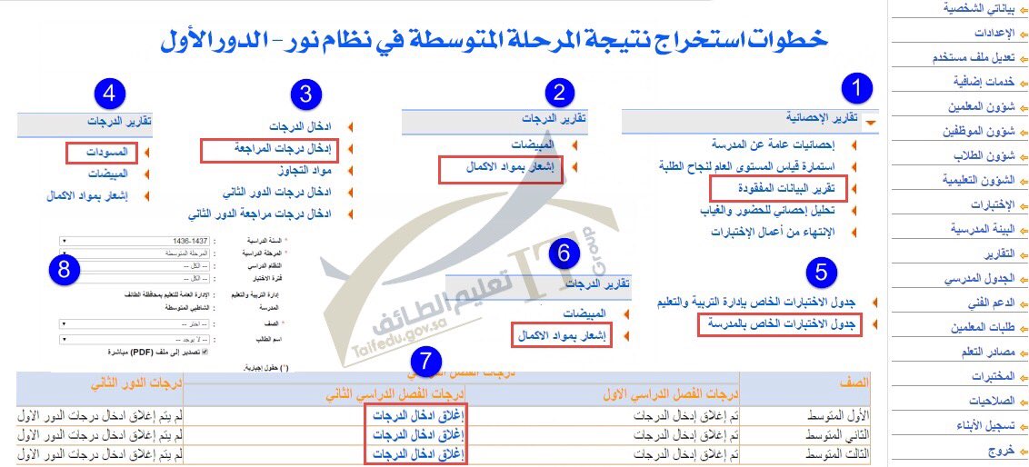 شرح مصور لـ خطوات استخراج نتائج الطلاب في نظام نور 2016 م