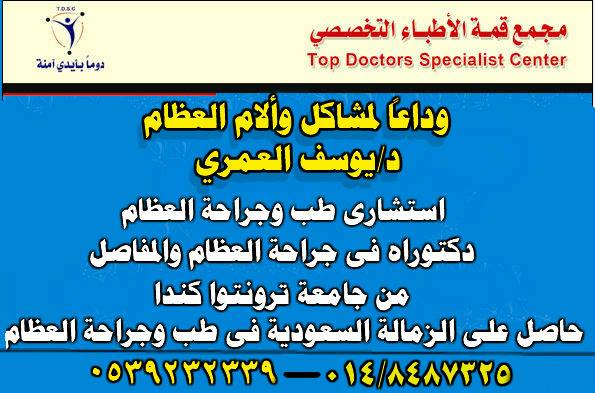 مع مجمع قمة الاطباء التخصصى (وداعا لمشاكل وألام العظام)