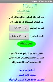 برنامج كتب الرياضيات للمناهج السعودية يحوي البرنامج جميع كتب الرياضيات لجميع المراحل الدراسية الابتدائية والمتوسطة والثانوية للفصلين الدراسيين الأول والثاني وجميع الروابط مباشرة بدون الدخول لصفحة التحميل ويحوي البرنامج الكتب التالية: *كتاب الطالب *كتاب النشاط *دليل المعلم *دليل التقويم للمعلم *مصادر المعلم للأنشطة الصفية والمراحل الدراسية مصنفة كالتالي: *المرحلة الابتدائية *المرحلة المتوسطة *المرحلة الثانوية النظام الفصلي *المرحلة الثانوية نظام المقررات هناك نسختان من البرنامج النسخة الأولى: للكمبيوتر بنظام ويندوز لا تحتاج إلى تثبيت وحجم الملف صغير لتحميل البرنامج My Files أو https://www.mediafire.com/folder/cbp...AF%D9%8A%D8%A9 النسخة الثانية: لنظام الأندرويد تعمل على الأجهزة الخاصة بنظام الأندرويد مثل الجوالات والتابلت والأجهزة اللوحية ملاحظة: لا يعمل البرنامج على الآيفون لتحميل البرنامج من متجر بلاي google play اكتب "كتب الرياضيات للمناهج السعودية" في خانة البحث |