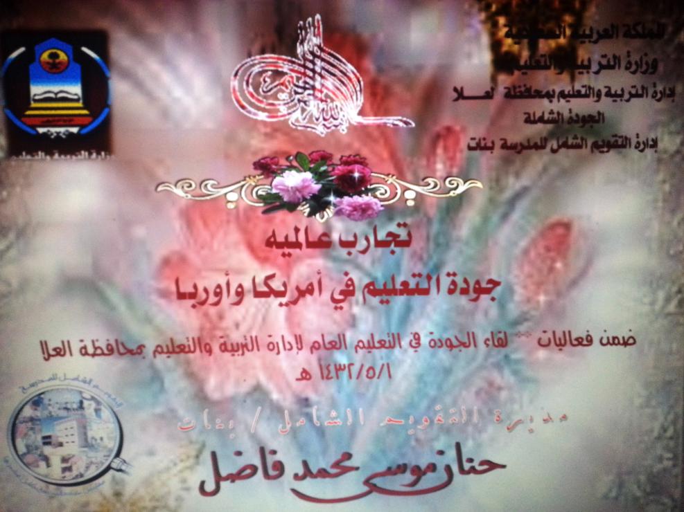 | من منجزات الجوده الشامله - بنات بالتربية والتعليم بمحافظة العلا | hnan fadehll | منتدى الجودة الشاملة | 2 | 2014-02-04 03:37 PM |
