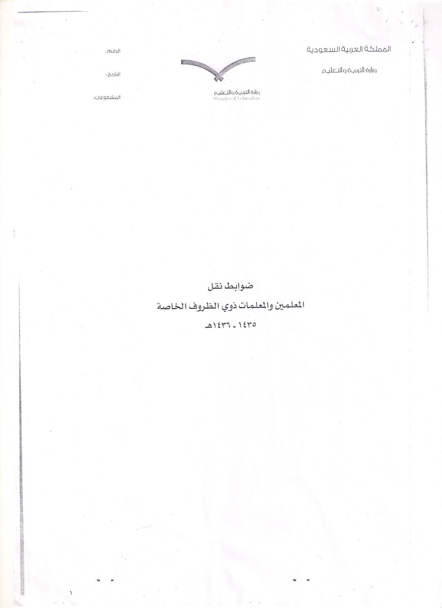| تعميم و ضوابط نقل ذوي الظروف الخاصة لعام 1435 ـ 1436هـ جديد | #منال | قسم التعاميم المدرسية | 1 | 2014-10-15 09:20 PM |