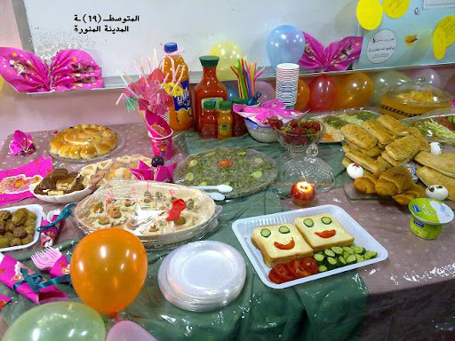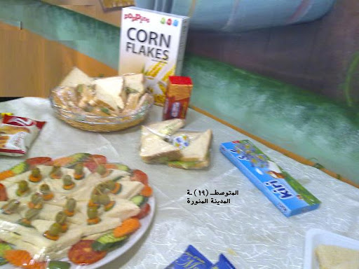 بسم الله الرحمن الرحيم ضمن فعاليات برامج المدارس المعززة للصحة أقامت المدرسة المتوسطة التاسعة عشر بالمدينة المنورة مهرجان الإفطار الصحي بعنوان غذائي سر نشاطي وذلك يوم الأحد الموافق 29/4/1432هـ وقد تضمن المهرجان مسابقة بين الفصول لتقديم أفضل إفطار صحي وذلك بإشراف مديرة المدرسة الأستاذة فاتن الشمراني والمنسقة الصحية أ. هند عواض السحيمي ووكيلة شئون الطالبات أ. فاطمة كرام معمر وإليكم الصور ..وكانت مشاركة الطالبات فعالة بتنسيق كل من رائدات الفصول المعلمات : مريم سالم الصبحي / سكينة علي النخلي / فاطمة حسن الحربي / سلمى سالم المحمدي / ميعاد الأزهري / ليلى جمعة / بدرية الأسمري / مرام محمد فلمبان/ مريم حبيب الله ![]() ![]() ![]() ![]() ![]() ![]() ![]() ![]() ![]() ![]() ![]() ![]() ![]() ![]() ![]() ![]() ![]() ![]() ![]() ![]() ![]() ![]() ![]() ![]() ![]() ![]() ![]() ![]() ![]() ![]() ![]() ![]() ![]() وتم تقييم الفصول حسب توافر الشروط الصحية للغذاء وتحديد الفصول الفائزة على مستوى المراحل بالمدرسة: فصل 2/3 بريادة المعلمة ميعاد الأزهري .. فصل 3/1 بريادة المعلمة مرام فلمبان .. فصل 3/4 بريادة المعلمة مريم الصبحي |