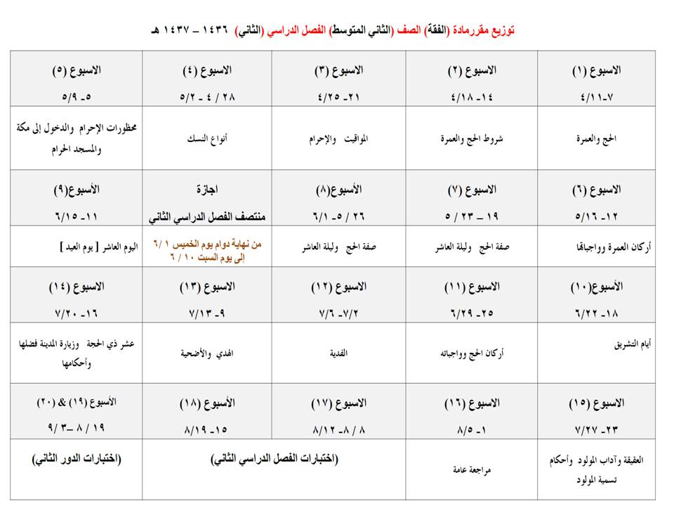 توزيع منهج الفقة للصف الثاني المتوسط لعام 1437 الفصل الدراسي الثاني توزيع توحيد ثاني متوسط هنـــــــــــــــــــــــا.doc توزيع فقة ثاني متوسط هنـــــــــــــــــــــــا.doc التعديل الأخير تم بواسطة ريوف فهد ; 2016-01-16 الساعة 03:53 PM. |