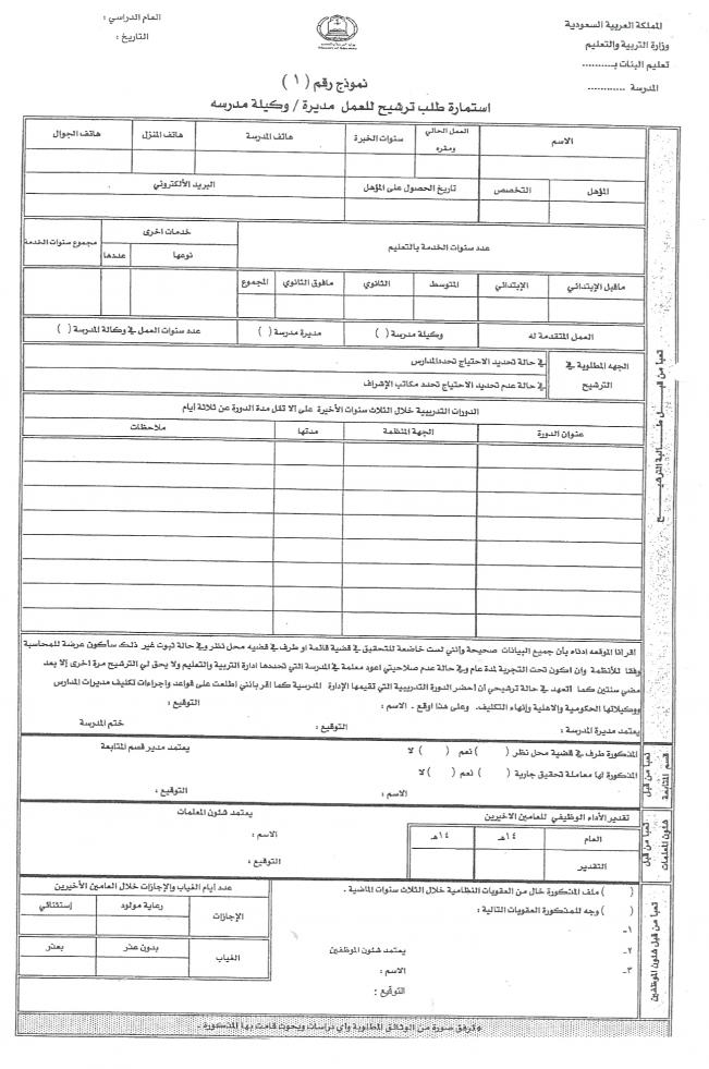 اخواتي اخيرا وصلت استمارات الترشيح لعمل وكيلة فمن ترغب تعبيء الإستمارة وترسلها لإدارة الإشراف التربوي وبالتوفيق |