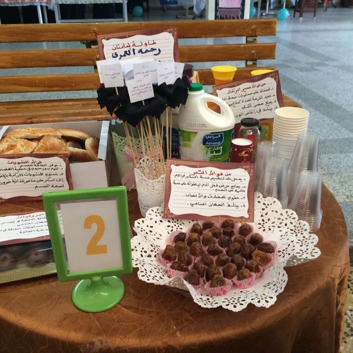 وجميع رائدت الفصول للمرحلتين المتوسطة والثانوية في جو من المنافسة والحماس وكان اللقاء رائعا بفضل جهودهن مع طالباتهن حيث تضمن الفطور جميع عناصر الغذاء الصحي مع تنسيق واخراج مميز كما ان الطالبات قمن بالتعليق على المواد الغذائية والاطباق الصحية وفوائدها فلهن جزيل الشكر والعرفان على ماقدمنه..