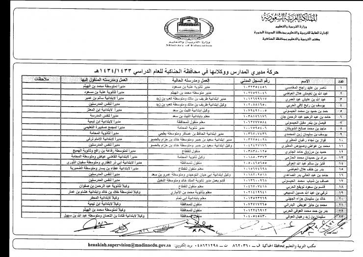 بسم الله الرحمن الرحيم أبغى حركة المدراء و الوكلاء خارج المدينة ( بالتحديد مدارس الحناكية ) ،، الأسماء الي في موضوع ( أبو تالا ) حملتها وما طلع لي شي ،، طلع الملف فاضي مافيه أسماء ،، فزعتكم الله لا يهينكم.... |