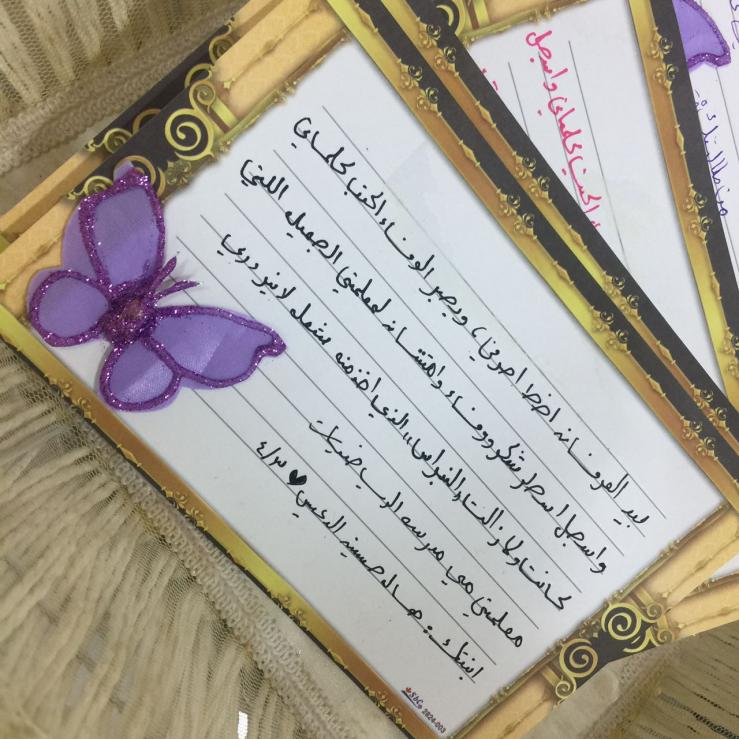 وفي الختام كانت فقرة مشاعر طلابية التي عبر فيها الطالبات عن محبتهن ومشاعر هن تجاه معلماتهن وفي نهاية البرنامج تم توزيع الورد على المعلمات واختتم بأناشيد للمعلمة .