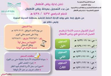 صدر قبل قليل تعميم من معالي وير التعليم ينص بإعادة تنظيم القبول في مرحلة رياض الاطفال عما كانت عليه في الاعوام السابقة حيث كانت الاولوية لابناء المعلمات اللاتي يدرسن في نفس الحي فأتى التعميم ينص على أن الأولوية لمن يسجل مسبقاً .......... يعني ( من سبق لحق ) ....... فقامت اليوم الادارة العامة للتعليم بمنطقة المدينة المنورة بإلغاء الجدول الموزع مسبقاً والذي كانت أولوية التسجيل لأبناء المعلمات وأيضا تم تأخير التقديم حتى يوم 2/7/1437هـ حتى امتلاء الشواااااااااااااااااااااااااااغر في الروضة دون أولوية تذكر .[/color حسب الاعلان المرفق بعد التعديل[/SIZE] |