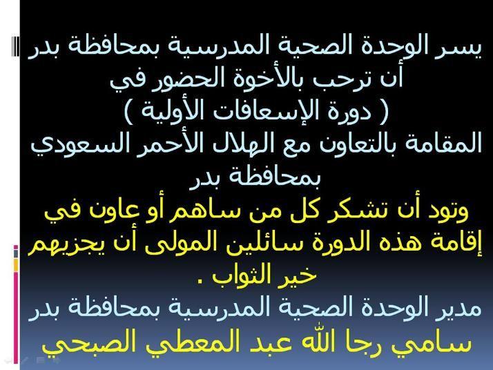 للمرشحين, للإسعافات, الأولية, الصحيين, ببدر, دورة, إقامة ![]() |