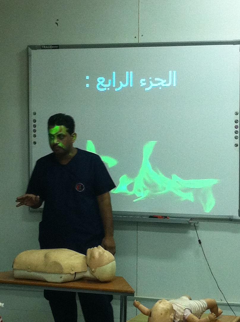 قامت الوحدة الصحية المدرسية بمحافظة بدر في يوم الأحد الموافق 16 / 5 / 1433بالإشتراك مع مركز الهلال الأحمر بمحافظة بدر بإقامة دورة للإسعافات الأولية بمدرسة ثانوية سفيان بن ثابت الأنصاري ومتوسطة بن النفيس بالواسطة ( تبعد قرية الواسطة حوالي 20 كلم شرق مدينة بدر ) وذلك في إطار برنامج المدارس المعززة للصحة وقد انتقل فريق الوحدة ( الذي تألف من الأستاذ سامي رجا الله الصبحي مدير الوحدة الصحية و كذلك طبيب الوحدة الصحية و الممرض محمود زكريا سليمان ومساعد الصيدلي عبد الله السهلي الحربي ) إلى المدرسة حيث التقوا هناك مع المسعف عبد الرحيم الأحمد وكان في استقبالهم فضيلة الشيخ / غازي بن حميد الرويثي مدير المدرسة الذي رحب بالفريق ثم اصطحبهم الأستاذ سعود عتيق الصبحي ( المرشد الطلابي والمرشد الصحي ) إلى غرفة مصادر التعلم حيث تواجدت جماعة الصحة بالمدرسة والتي تتألف من طلاب من كل صف وكذلك معلمين . و في البداية قام طبيب الوحدة بإلقاء محاضرة وكذلك تم عرض شرائح داتاشو أعد خصيصا لهذا البرنامج ثم تبعه بعد ذلك المسعف عبد الرحيم الأحمد حيث شمل البرنامج مواضيع عدة منها الإنعاش القلبي الرئوي والـغصة و............إلخ وعقب ذلك تم الندريب العملي على الدمى المحاكية للكبار والصغار ولقد قام مدير الوحدة الصحية وكذلك مندوب الهلال الأحمر بإهداء بعض الكتب الصحية إلى المدرسة . وإليكم بعض الصور الملتقطة خلال تلك الزيارة التعديل الأخير تم بواسطة أحمد صلاح الحفني ; 2012-04-22 الساعة 11:21 AM. |