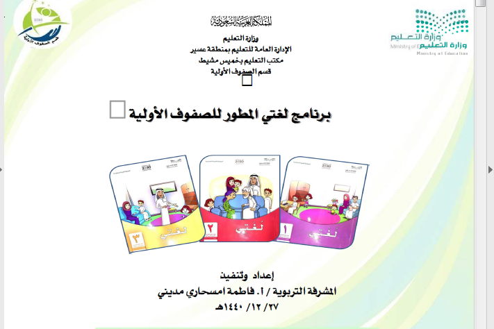 أوراق عمل برنامج لغتي المطور الصف الأول الإبتدائي جديد 1441هـ \ 2020 م نموذجين WORD + pdf