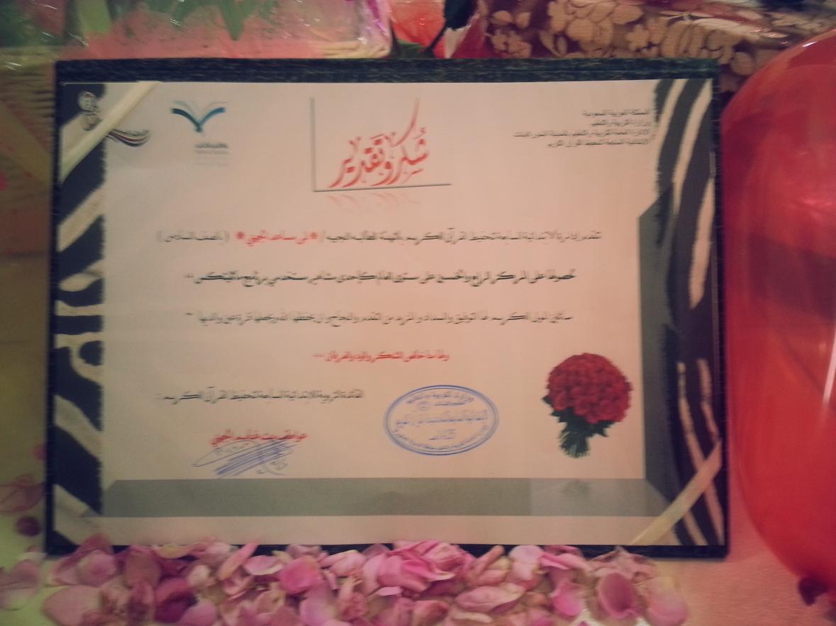 حماها الله ووفقها وسدد على طريق الخير خطاها وهنيئا لوالديها الكريمين ونبارك لهما وجعلها الله قرة عينيهما عوافي ايتها الراقية لهذا النقل الرائع دمت بكل الخير ومن تقدم الى تقدم يا منبرنا الغالي القائدة التربوية / عواطف الجهني |