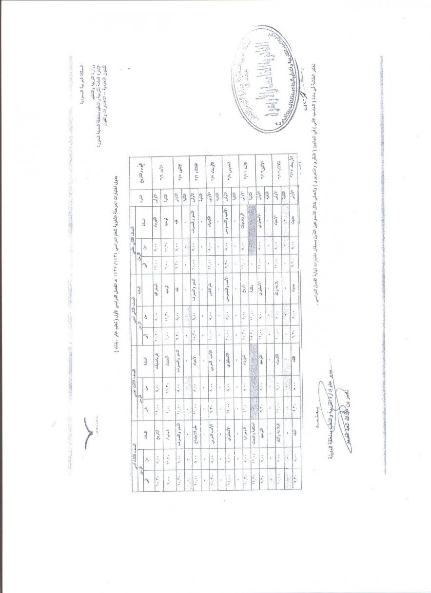 جدول اختبارات المرحلة الثانوية للعام الدراسي 1434/1435 للفصل الدراسي الاول