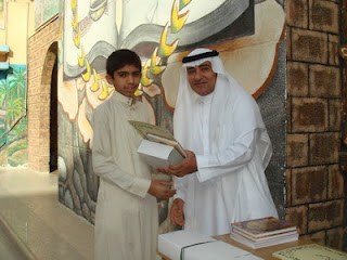 تفضل الأستاذ .. أيمن أسعد توفيق القائد التربوي لمدرسة عمر بن الخطاب " رضي الله عنه " بتكريم الفائزين بمسابقة القارئ المثالي بأن سلمهم شهادات شكر وكتب وهدايا وذلك يوم السبت الموافق : 21 / 6 /1433هـ . وتأتي هذه المسابقة ضمن أنشطة مركز مصادر التعلم والتي يعلن عنها المركز مع بداية كل فصل دراسي .. حيث يفوز بها من يلتزم بالقواعد التالية : -الالتزام بآداب زيارة المركز .-الأكثر استعارة . -المحافظة على الكتب المستعارة .-إرجاعها في الوقت المحدد بدون تأخير . حيث تهدف المسابقة إلى رفع المستوى القرائي لدى الطلاب بغرس عادة القراءة وتنميتها لديهم وجذبهم إلى مركز مصادر التعلم للتعرف على ما يحتويه من مصادر والاستفادة منها . أمين مصادر التعلم بالمدرسة الاستاذ المميز طلال بن صالح العلوي |
