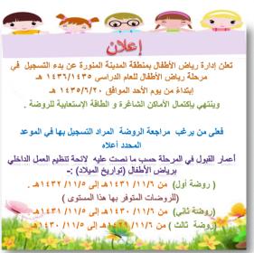 1436, للعام, مواعيد, الأطفال, التسجيل, الدراسي1435 or, بالمدينة, رياض ![]() |