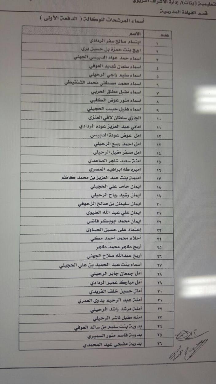 | رئيسة قسم الادارة المدرسية : الاسبوع القادم الإعلان عن الوكيلات الجدد | معلم متقدم 2 | منتدى المعلمين والمعلمات | 16 | 2016-09-29 09:15 AM |
