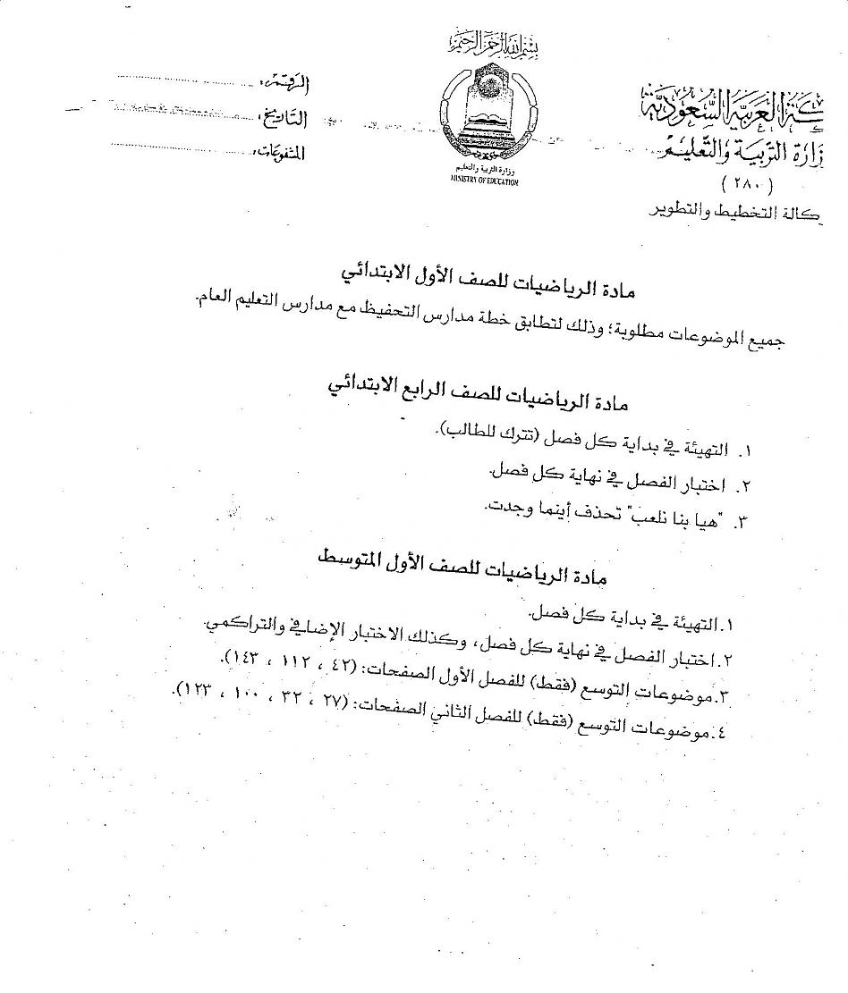 هذا تعميم بمقررات الحذف لمنهج الرياضيات الجديد للمرحله الابتدائيه والمتوسط لكن للاسف الحذوفات قليله جدا |