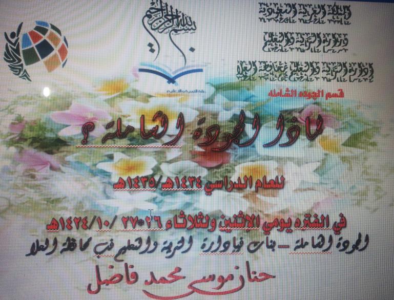 | من منجزات الجوده الشامله - بنات بالتربية والتعليم بمحافظة العلا | hnan fadehll | منتدى الجودة الشاملة | 2 | 2014-02-04 03:37 PM |