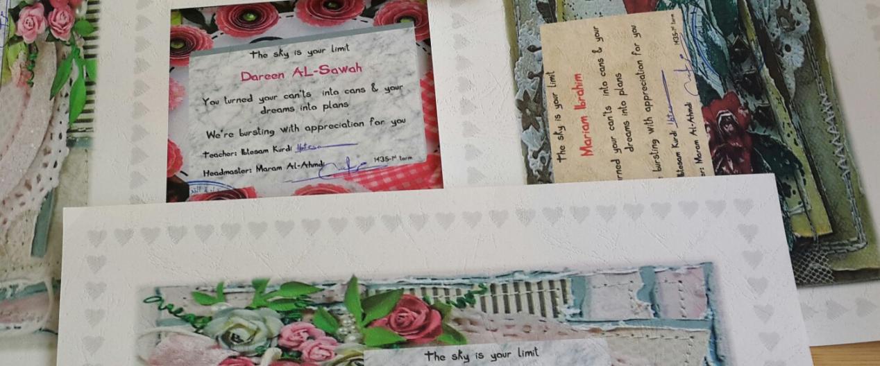 بسم الله الرحمن الرحيم سمونا بطموحك وأرتقيت بسلم العلم تقدم موكب المتفوقين في صرحنا العلمي الشامخ في إستلام شهادات تكريم من المعلمات : (إبتسام كردي _فاطمه الحجيلي _منى الحجيلي ) لتفوقهم في مادة الإنجليزي في حفل منسق ومنظم لتشجيع الأخريات وتحفيزهم . تحت إشراف القائدة التربوية /مرام الاحمدي |