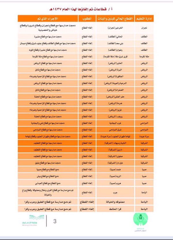 السلام عليكم ورحمة الله وبركاته ضم وألغاء بعض القطاعات في النقل الخارجي لعام 1436 / 1437هـ أعتمد معالي وزير التعليم قطاعات جديدة وفق دراسة معدة من الأدارة العامة لشؤون التعليمية وإدارات التعليم قطاعات تم إلغاؤها ![]() ![]() التعديل الأخير تم بواسطة #منال ; 2015-12-30 الساعة 11:19 PM. |