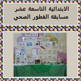 السلام عليكم ورحمة الله وبركاته لقد تم تفعيل الإفطار الصحي بالمدرسة الابتدائية التاسعة عشر عن طريق برنامج إذاعي ومشهد تمثيلي ولوحات ارشادية وإقامة معرض للغذاء الصحي ومسابقة بين الفصول لأجمل فطور صحي .. [IMG]http://in****.nav-links.com/images/spinner-ani48.gif[/IMG] [IMG]http://in****.nav-links.com/images/spinner-ani48.gif[/IMG] [IMG]http://in****.nav-links.com/images/spinner-ani48.gif[/IMG] |