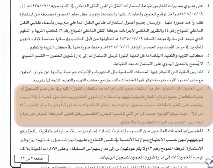 نص التعميم يقول مدارس او شرائح للمعلمين المنقولين الى المدينة خارجيا