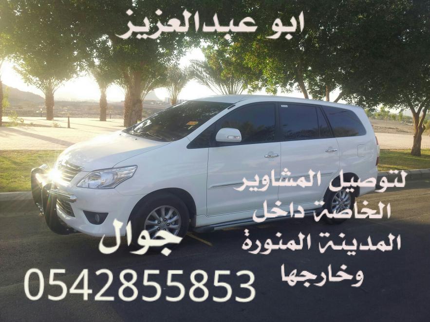 بسم الله الرحمن الرحيم السلام عليكم ورحمة الله وبركاته يسعدني ويشرفني خدمتكم لتوصيل المشاوير الخاصة داخل المدينة المنورة وخارجها لتواصل رقم الجوال ( 0542855853 ) أبو عبد العزيز |