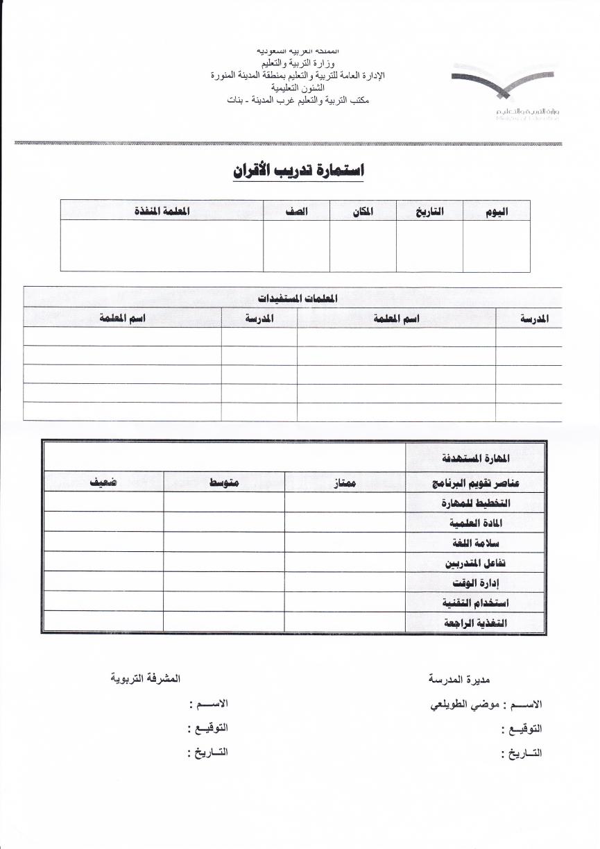[overline]بسم الله الرحمن الرحيم ارفق لكن في هذا الموضوع بعض النماذج المهمة لك في المدرسة حتى يكون عملك على اكمل وجه وبشكل منظم ورائع وهي نموذج تبادل الزيارات نموذج تدريب الاقران نموذج التدريب المصغر نموذج تبادل الحصص بين المعلمات نموذج استئذان معلمة من المدرسة اتمنى ان تكون مفيدة لكن ولكم مني جدزيل الشكر والتقدير [/overline] |