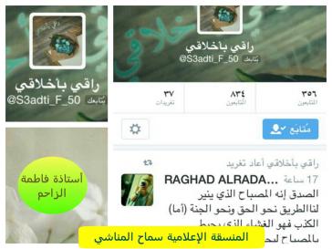 راقي بأخلاقي حملة تقوم بها المعلمة المبدعة أستاذة فاطمة الزاحم في توتر. إذ تهتم هذه الحملة برقي وسمو الأخلاق التي من شأنها الرقي بالأمة وهدفها هو تغيير بعض السلوكيات غير المرغوب فيها وغرس بعض القيم الدينية |