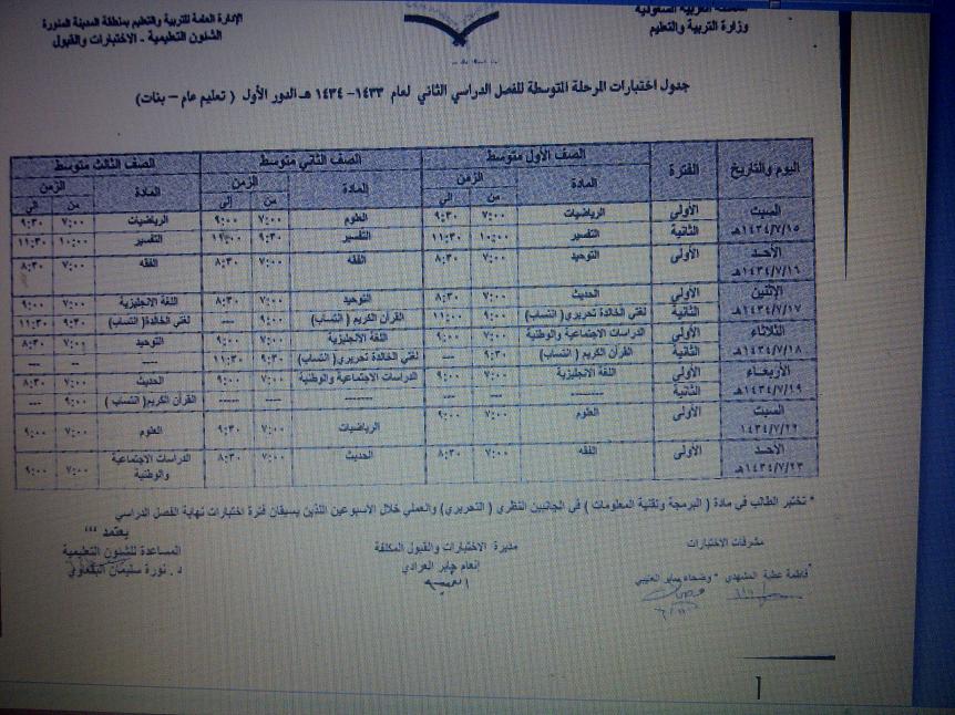 تجدون في المرفقات الجدول المعتمد الرجاء الانتباه لمواعيد الحضور والمواد وبالتوفيق للجميع .. التعديل الأخير تم بواسطة المتوسطة 17 بالمدينة ; 2013-11-29 الساعة 05:08 PM. |