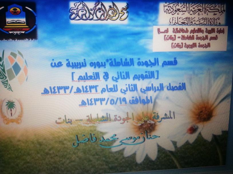 | من منجزات الجوده الشامله - بنات بالتربية والتعليم بمحافظة العلا | hnan fadehll | منتدى الجودة الشاملة | 2 | 2014-02-04 03:37 PM |