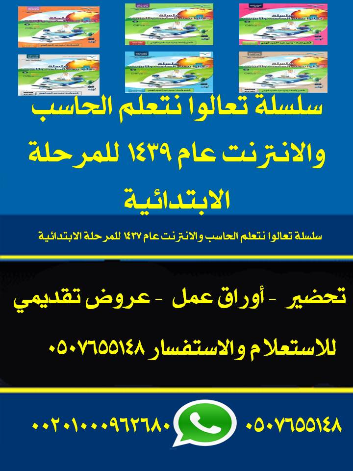 | تحضير سلسلة تعالوا نتعلم الحاسب و الإنترنت للمرحلة الإبتدائية الفصل((الأول + الثاني)) | كلي تفاؤل و أمل | المستوى الخامس | 153 | 2016-09-23 01:28 AM |